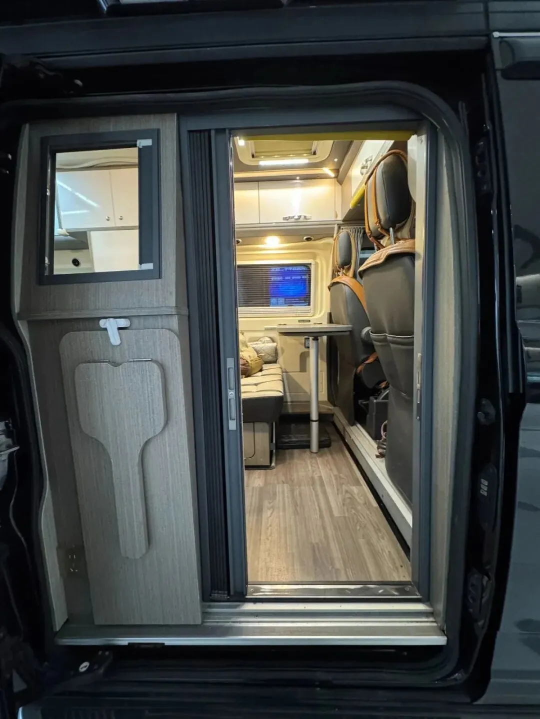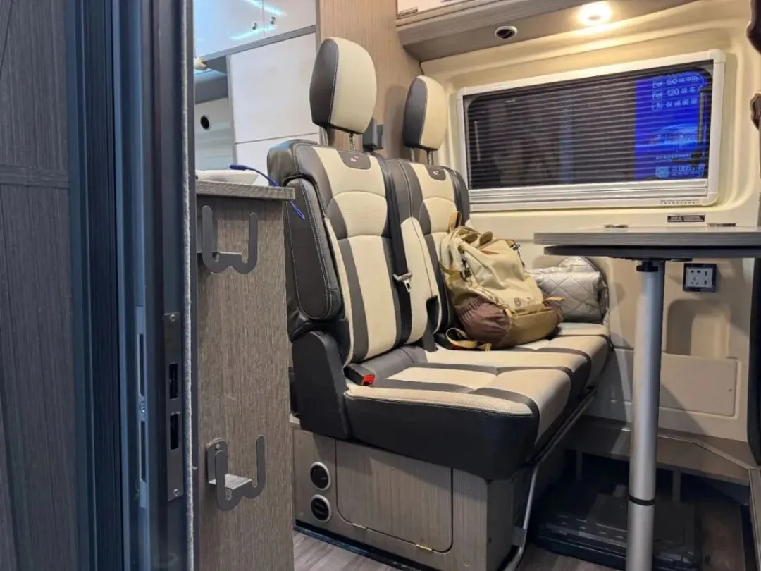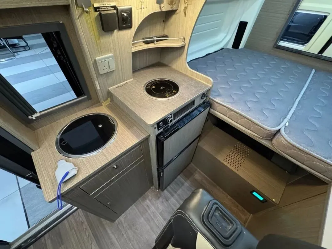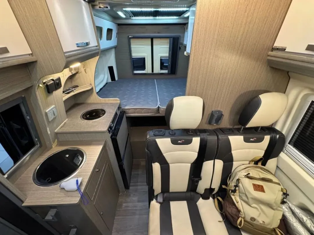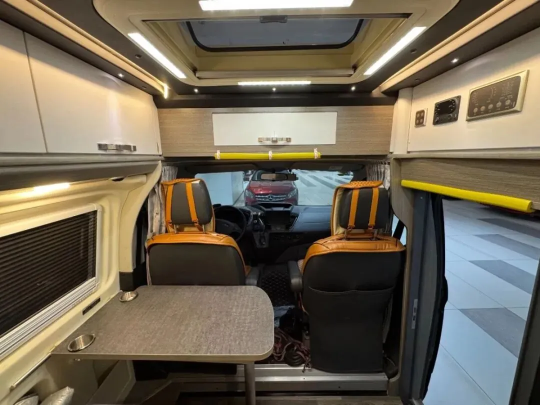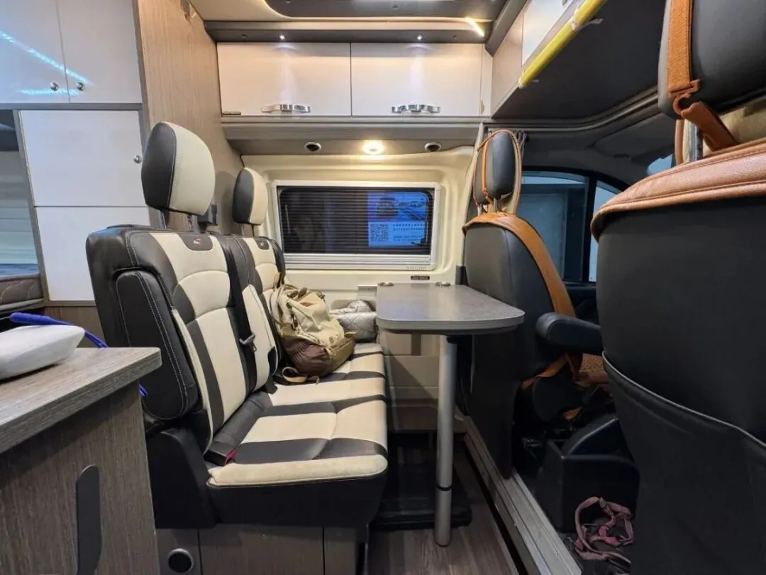 【车辆名称】:瑞弗R500【上牌时间】:2022年7月12日【公里数】:59089【过户情况】:个人1手,非营运【底盘名称】:福特V362【动力】:2.0T汽油【驱动方式】:2驱【变速箱】:6档自动【排放标准】:国六排放【核载人数】:4人【车身尺寸】:长:5465宽:2080高:2480【水电配置】:3000W逆变器,400HA锂电池,400W太阳能,75L净水,40L灰水【电器配置】:电磁炉,微波炉,108L冰箱,汽油暖风热水,特鲁玛底置空调,换气扇【卫生间配置】:客户后改卫浴间变整体套柜【户外配置】:户外遮阳棚,户外照明灯,后尾门爬梯【其它配置】:改中门纱窗,尾门纱窗,定制熏黑鹰爪式轮毂,客户后改天窗变整体额头吊柜