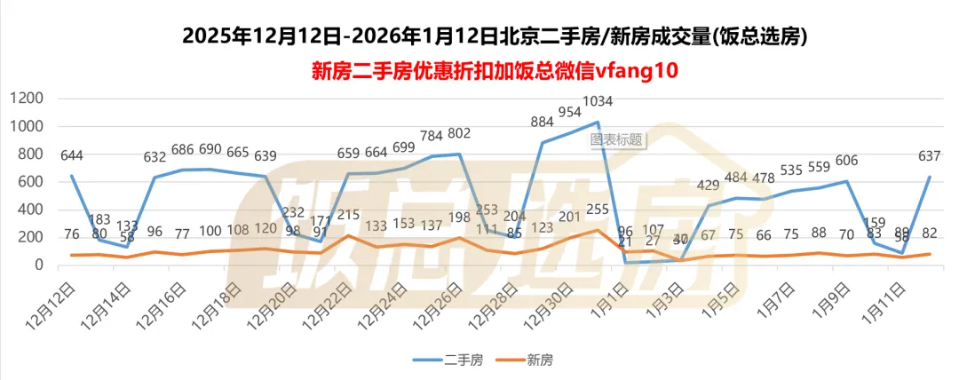 1月1号-12号北京二手房住宅网签4064套,12号637套