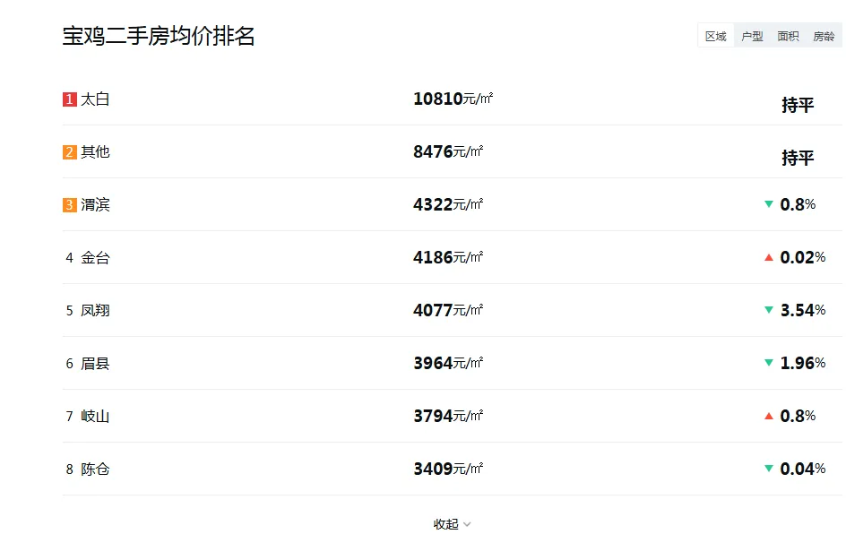 可以发现,如今宝鸡市区的二手房市场均价都已跌破5000元/㎡。