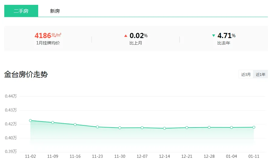 金台区二手房均价4186元/㎡,比上月上涨0.02%。