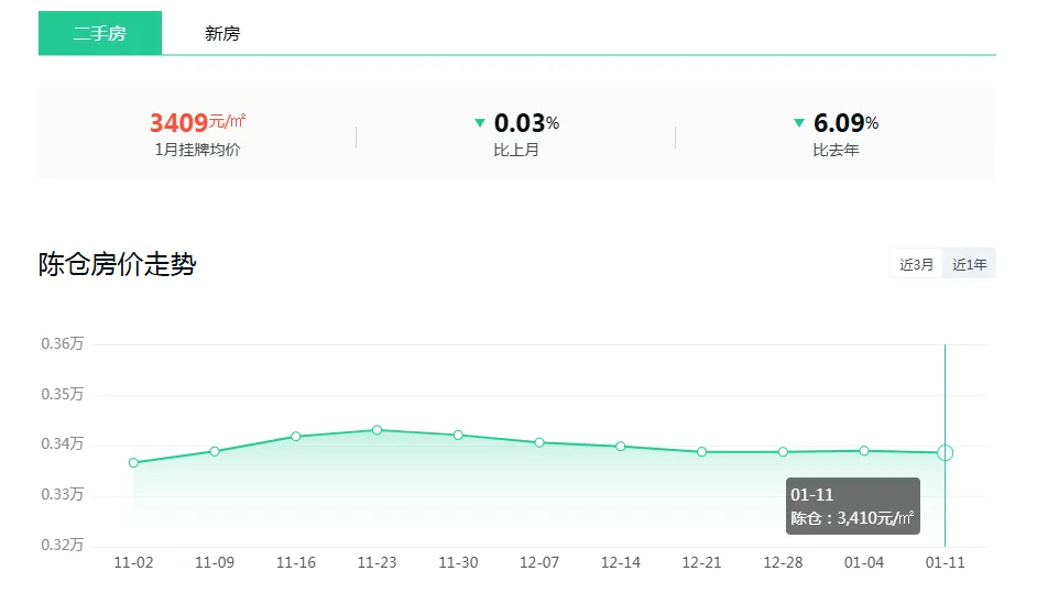 陈仓区二手房均价3409元/㎡,与上月相比下降0.03%。