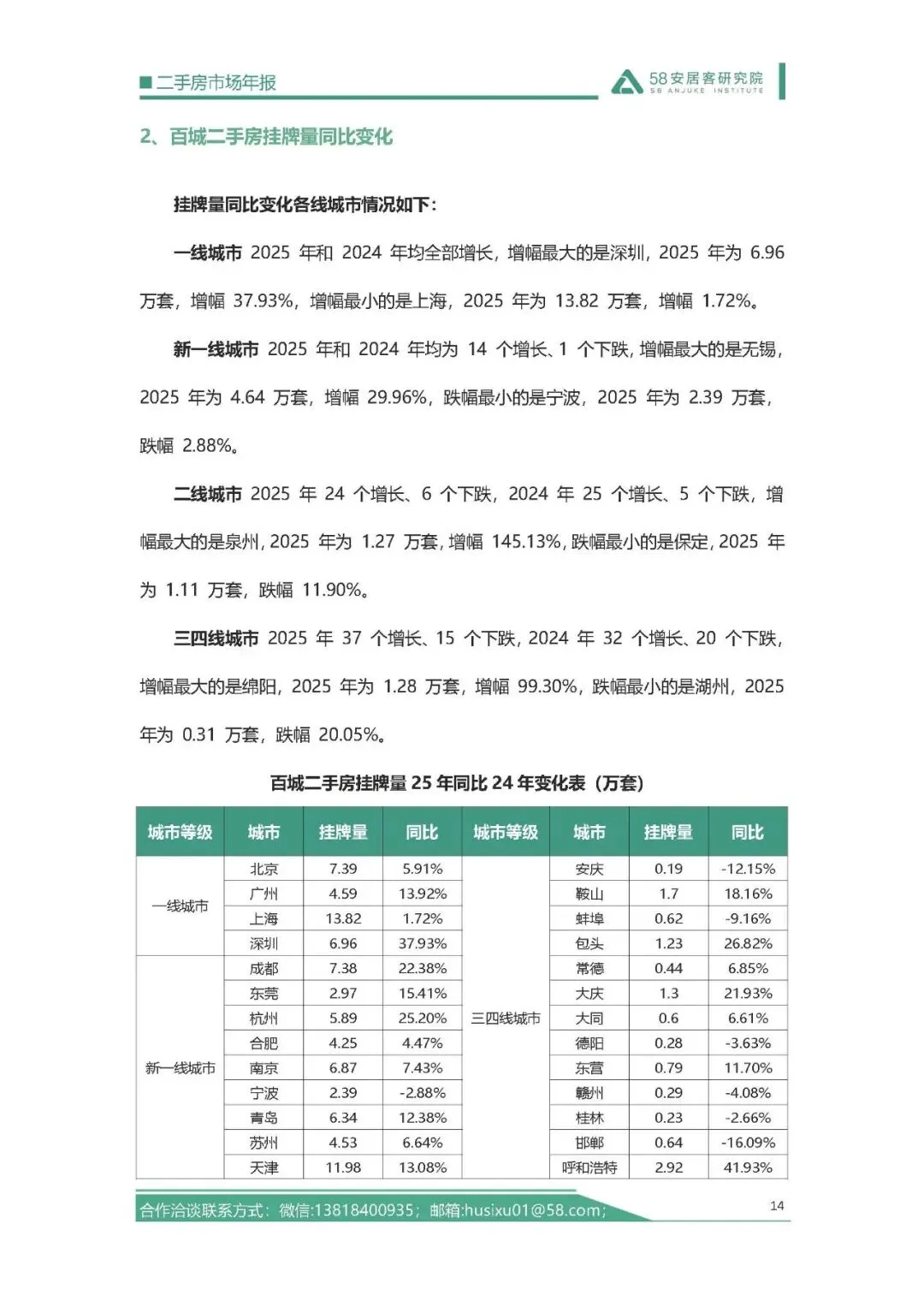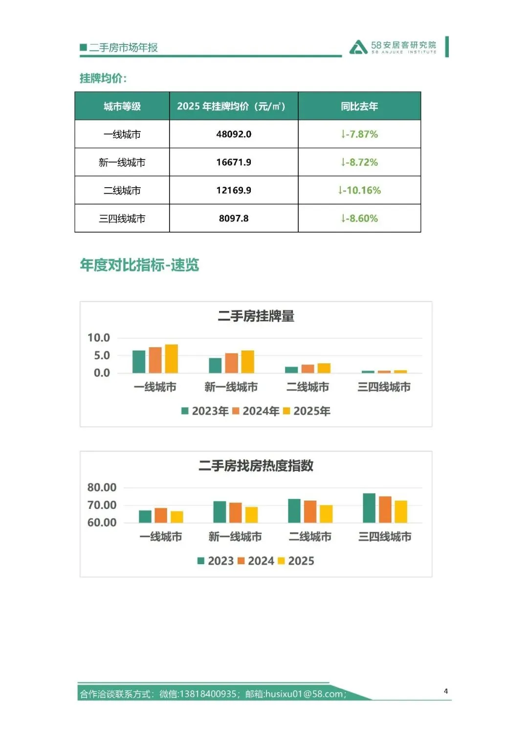 挂牌量上,总量上升但增速放缓,一线城市增速下降不过流动性充足,三四线城市增速领跑但内部差异大。找房热度延续三年下滑,新一线、二线城市跌幅更深,政策聚焦稳定预期,长期热度有望反转。