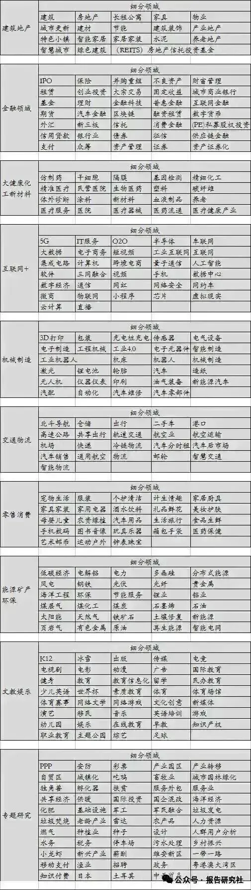 附报告覆盖行业范畴