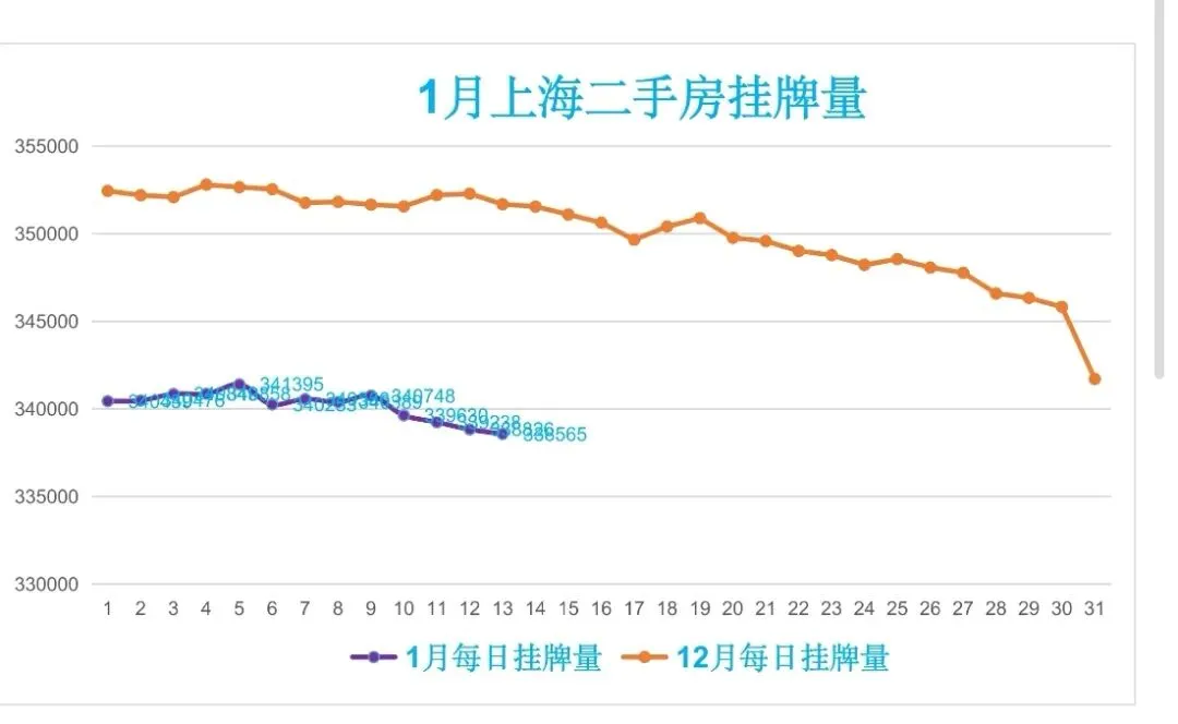 🏠昨日(1月13日,周二)挂牌338565笔,较前一日减少261笔,日均挂牌340170笔,约34.02万笔,挂牌与实际成交比524:1,去化周期约17.5个月。