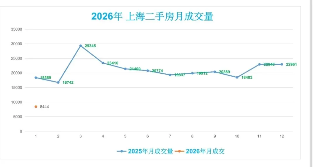 ♻️截止2026年1月13日,2025年上海二手房成交量合计254091套,月均21174套。