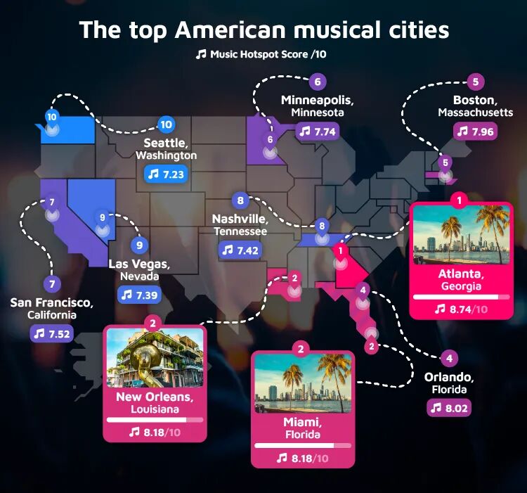 尽管波士顿的音乐热点评分不及某些超大城市那样位居榜首,它仍成功跻身全国前五,这本身就是一项令人瞩目的成就。