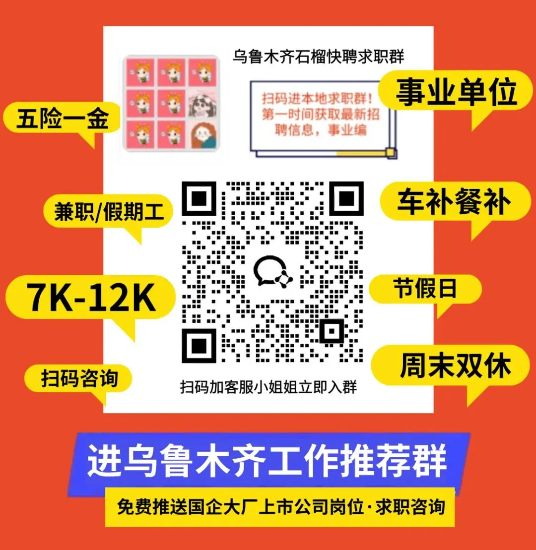 ☟戳下方“阅读原文”,进入乌鲁木齐石榴快聘!