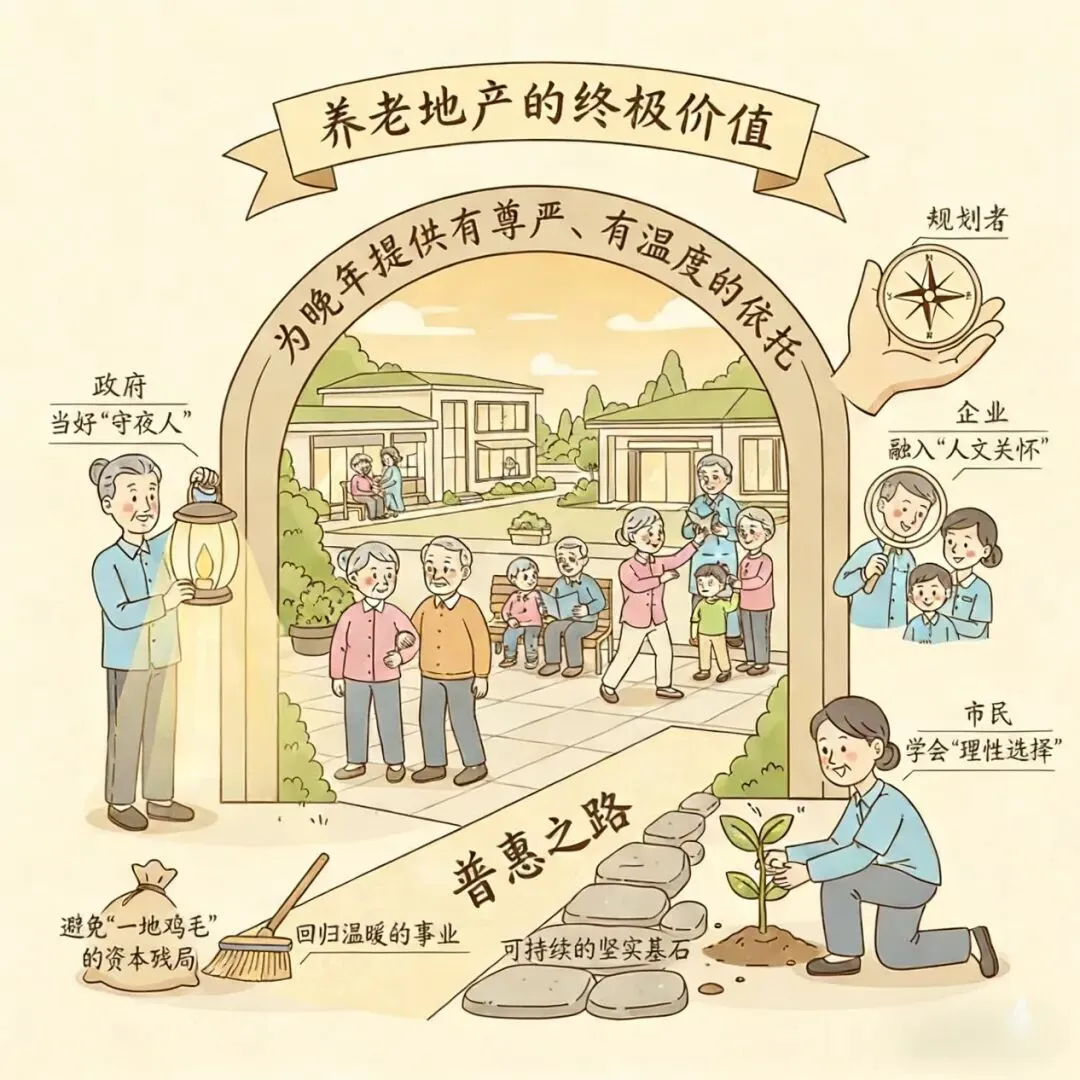 养老地产的终极价值,在于为生命的晚年提供有尊严、有温度的依托。它不应是一场资本的冒险,而应是一项温暖的事业。当各方凝聚共识、相向而行,我们就能将“银发浪潮”的挑战,转化为提升社会福祉、促进经济高质量发展的重大机遇,真正托举起每个人安稳、体面的晚年。