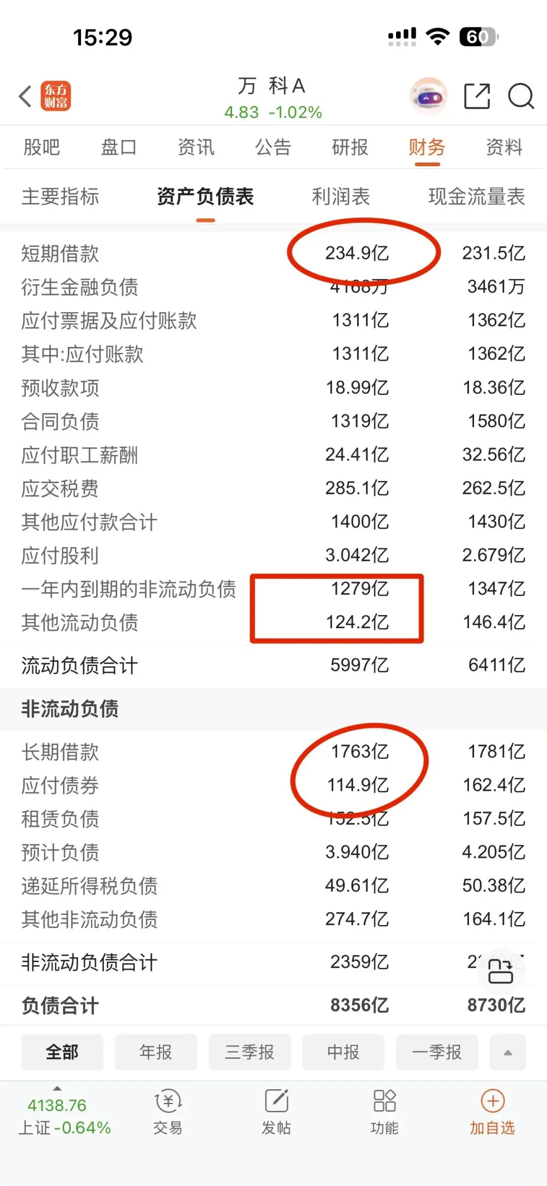 摆在万科面前的,是一张并不乐观的财务报表。万科地产有息负债规模高达3500亿元,短期债务占比47%,形成了一道陡峭的“支付悬崖”。而账面货币资金仅为656.8亿元,现金短债比低至0.4,流动性危机已如影随形。另外账上还有不知为何物,一年内需支付的1400亿的巨额其他应付款,区区600多亿现金根本赌不住万科的巨额债务漏洞。