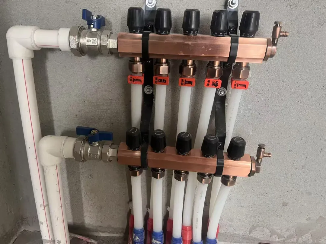 地暖采用中财PE - RT 地暖管与中财锻造一体式(镀镍)分水器。传统分水器易出现水流小、结垢堵塞问题,而升级后的锻造一体式分水器,优化流道设计,加大内径,流量提升 25%。一体锻造技术确保主体与支路无缝连接,增强密封性能,杜绝渗漏。加强筋与特殊端头设计,抗压抗胀裂,纯铜材质保证良好导热与耐腐蚀性,精致镀镍防锈防氧化。球阀采用活接式,阀体角度可按需调整,降低故障风险与维护成本。