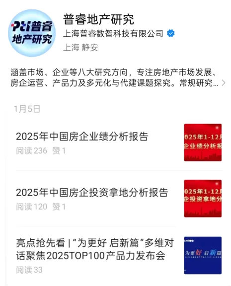 一个名为“普睿数智研究中心”的机构通过其公众号《普睿地产研究》,