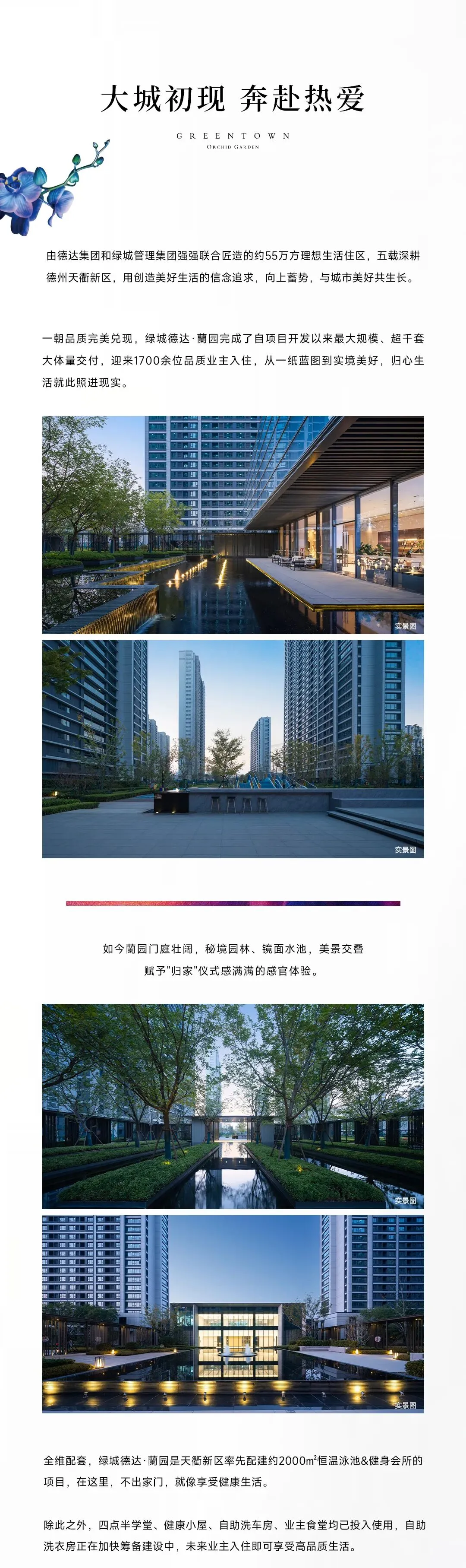绿城德达·蘭园的社区营造,旨在让每份生活都成为尊崇的仪式。片区内罕见的南北双四季大堂,迎接每位归来的蘭园家人;绿城五重园林体系,精心构筑38大主题花园,让回家成为一场穿越风景的旅行。