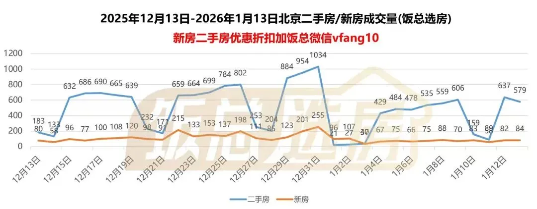 1月1号-13号北京二手房住宅网签4643套,13号579套