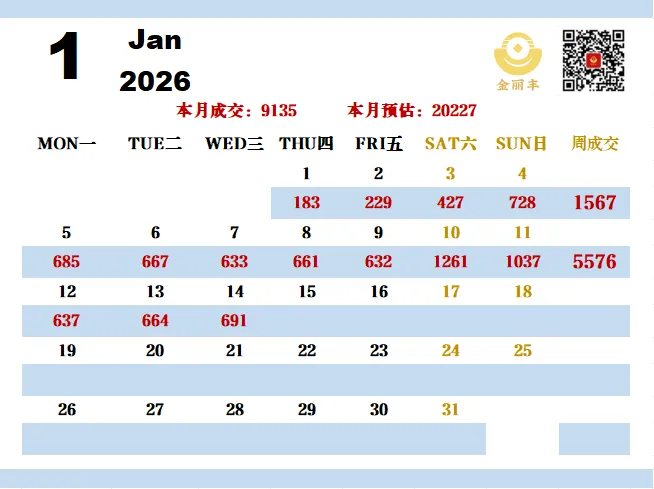 1月份上海二手房成交日历