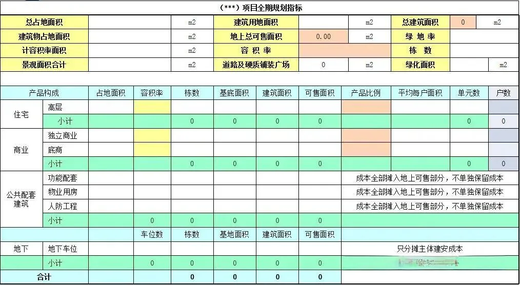 1.3.1项目规划指标样表(初步强排)