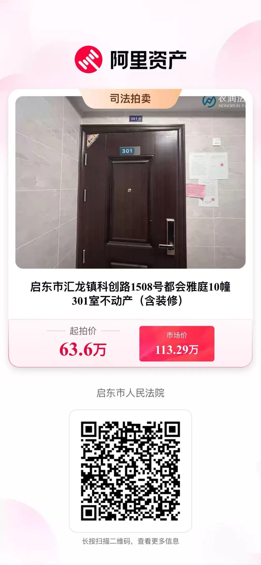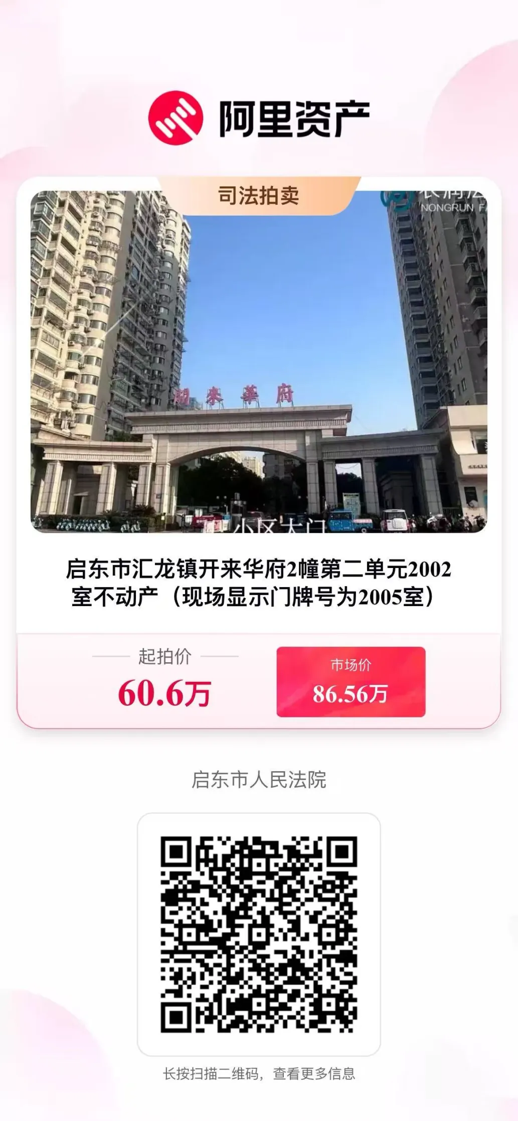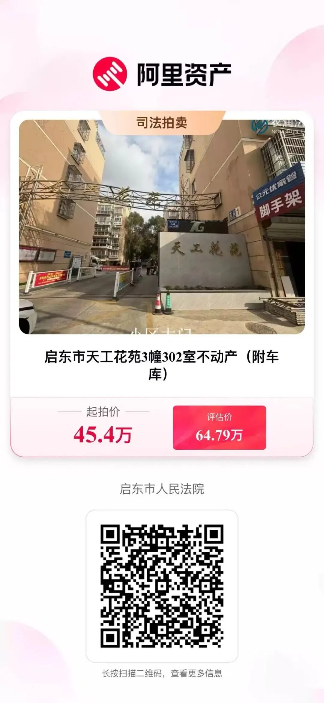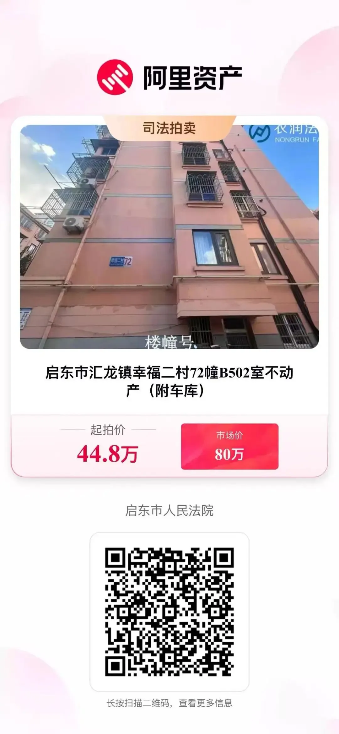 启东市人民法院,司法网拍推荐8套房产,即将在阿里资产平台开拍,户型多样,满足刚需自住、改善置换与资产配置等多重需求,所有房源起拍价均低于市场评估价,机会难得,赶紧关注!