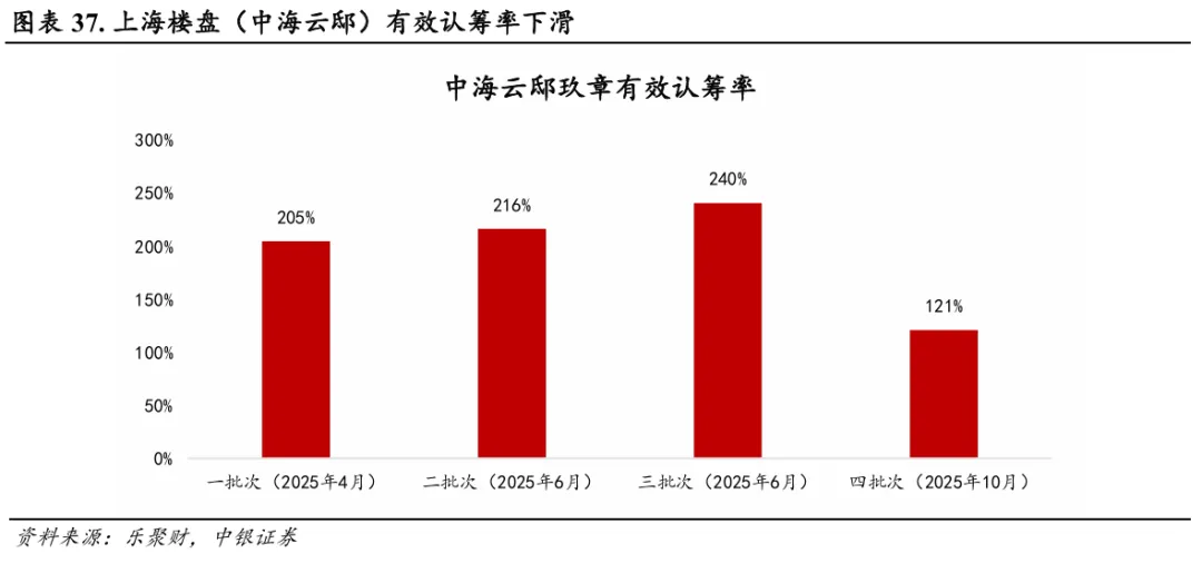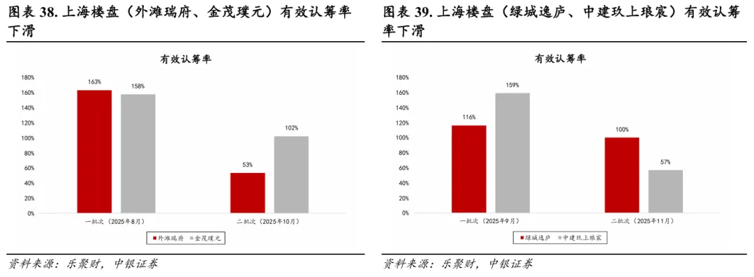 2)市区高端楼盘:金茂璞元认筹率从8月一批次的157.6%下降至10月二批次的101.8%,外滩瑞府降幅更大,由163%下降到53.4%。10月唯一宣布开盘日光的是位于闵行别墅区的尚园,凭借145.5%的有效认筹率达成售罄,不过要注意的是推盘套数只有44套,截至10月30日网签了27套。
