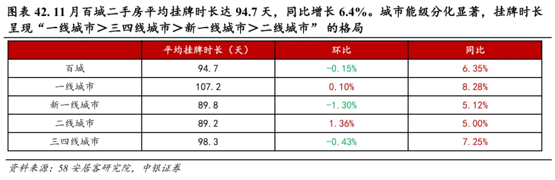 3.4 二手房市场流动性分化:一线城市因置换链条时间拉长,流动性压力凸显;低能级城市因需求不足流动性较弱