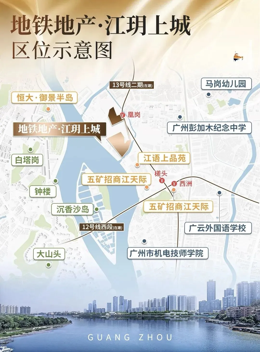3,临近地铁12号线西洲站,13号线二期凰岗站上盖,与社区无缝衔接,未来还将建成地下通道直达珠江新城,交通网络完善,出行便捷。
