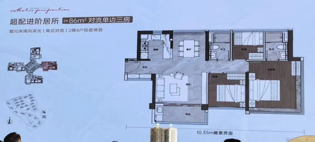 “上境”系列为T4塔楼产品,31层高,产品涵盖建面约86-106㎡三四房,该系列户型采用南向四面宽,做到超10米宽幕采光,同时融入LDKB一体化设计,转角飘窗超高赠送。