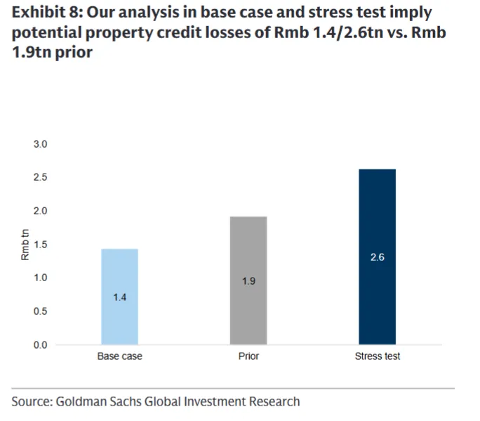 地产信贷损失可控(图表8,研报P5):基础情景总损失1.4万亿,银行仅承担1.1万亿,现有1.05万亿风险准备金基本覆盖;压力情景总损失2.6万亿,银行承担2.1万亿,仅需额外补1.09万亿拨备。