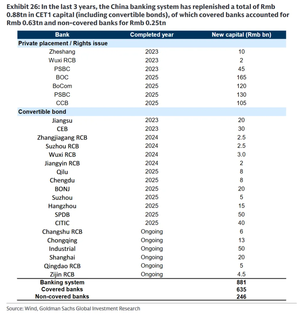 市场担心银行资本不足,但研报图表26(研报P12)显示,过去3年银行业已补充8810亿CET1资本,覆盖银行6350亿、非覆盖银行2460亿。2025年政府还向四大行注资5200亿,直接提升平均CET1比率103个基点。