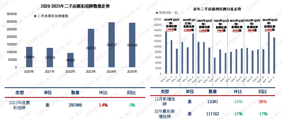 2025年全年累计挂牌量达到29.2万套,同比微降1%,但存量规模依然庞大,买方市场特征持续。