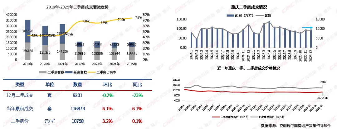 2025年二手房成交116473套,占比高达74%,同比上涨6%,市场全面进入“存量房时代”;