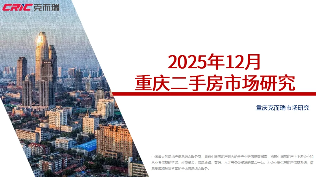 进入2025年末,重庆二手房市场累计挂牌仍处于高位,新增挂牌的增长动力明显放缓;成交量价趋稳,从刚需到高端改善均有真实购买力支撑;