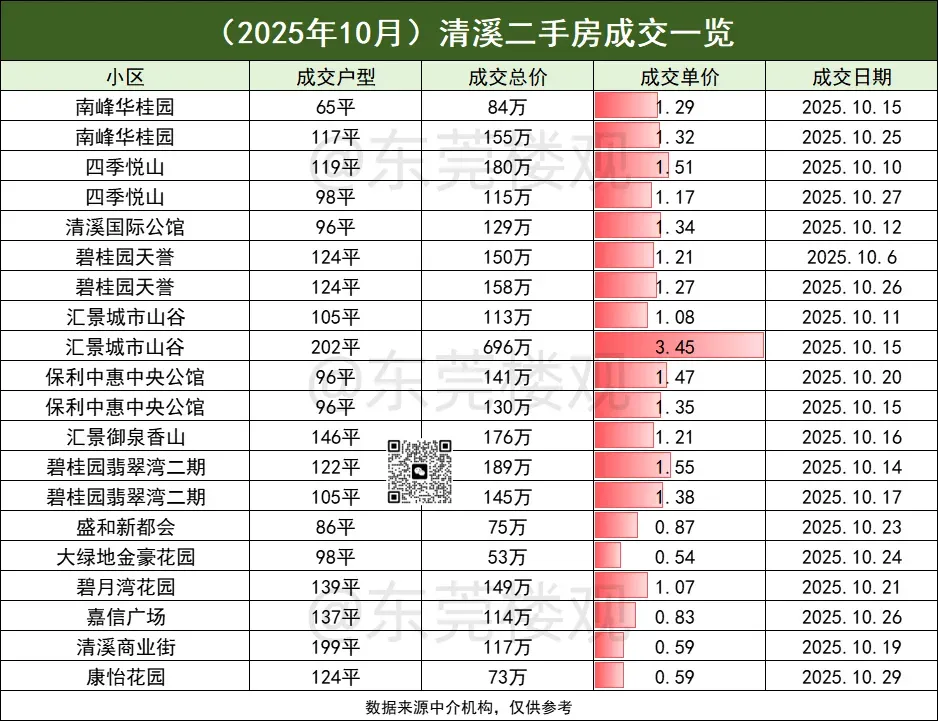 本次统计的清溪(统计时间为2025年11月1日至11月31日),清溪9月和10月份二手成交数据同步发出。