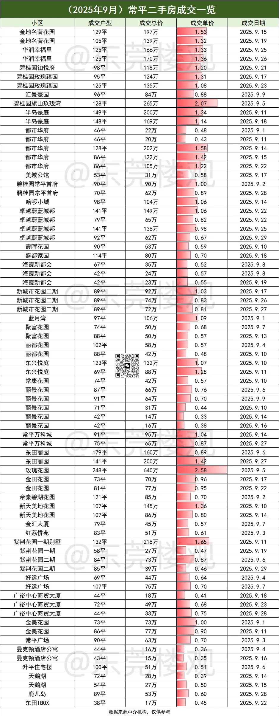 常平横沥二手房成交数据(10月份)