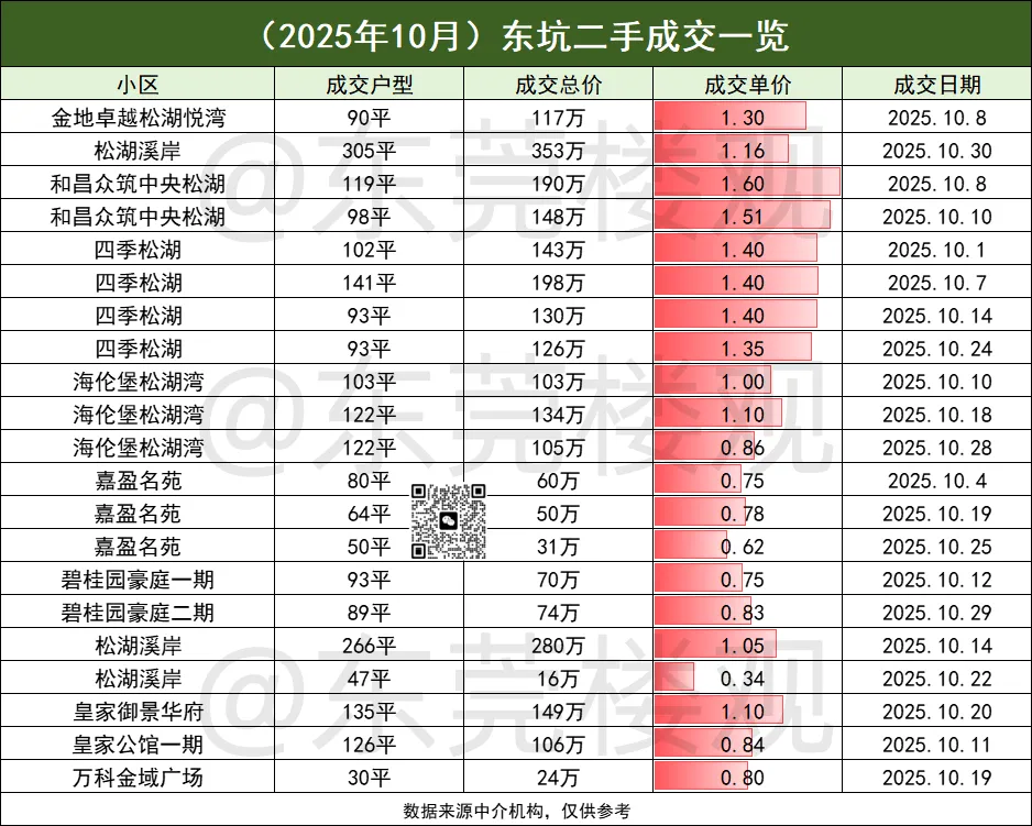 ,以下为贝K网成交数据,作为东莞市占率最高的中介机构,应该相当具有参考价值。