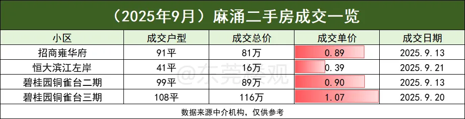 以下为贝K网成交数据,作为东莞市占率最高的中介机构,应该相当具有参考价值。