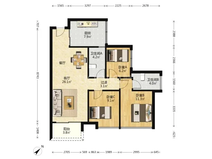 8、西丽品质次新房,远洋天著华府,105平3+1房2卫,自住标准精装修,中高楼层,一口价825万。