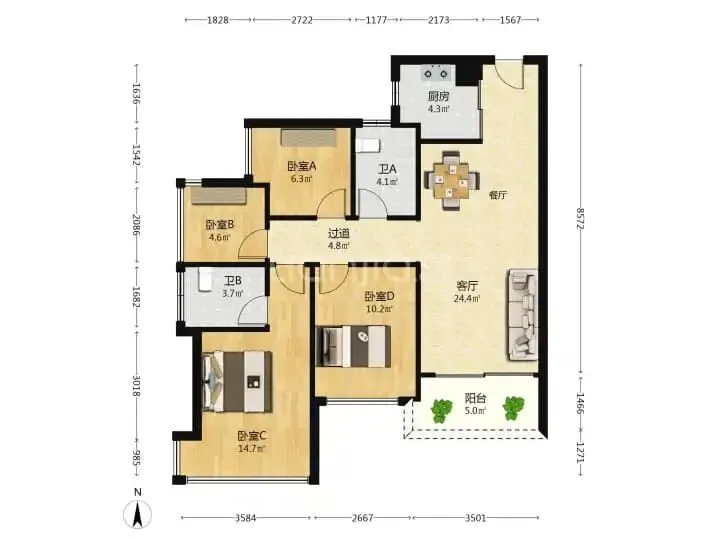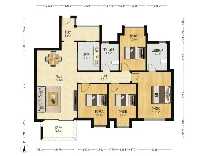 9、半岛城邦二期140平4房2卫,南北通透,两梯两户,1350万。