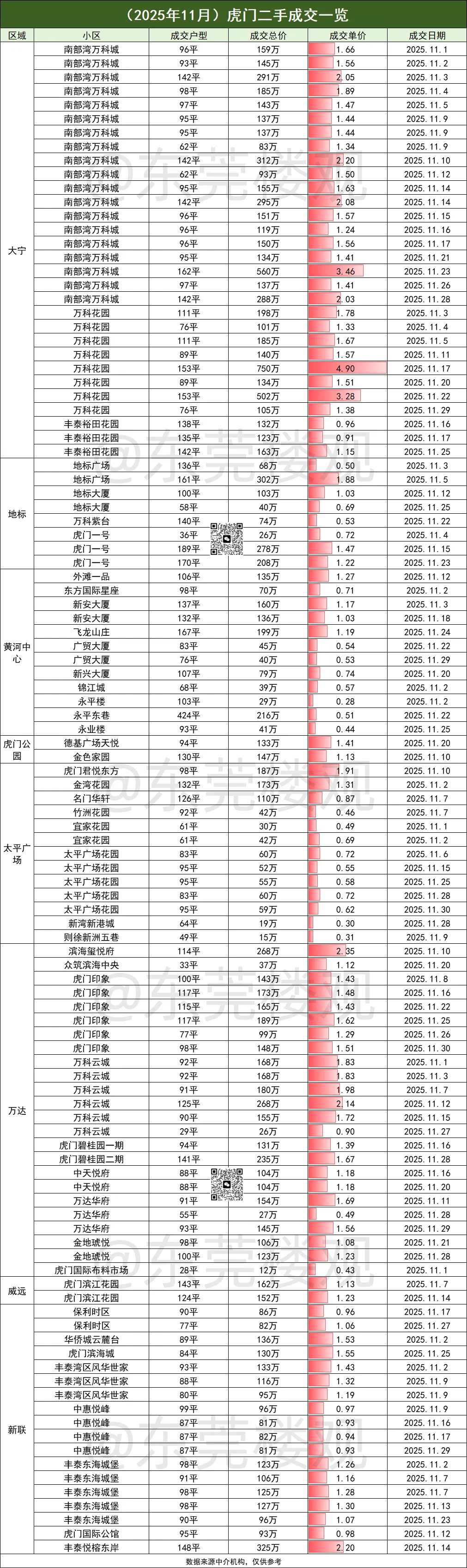 本次统计的虎门(统计时间为2025年11月1日至11月31日),另虎门9月和10月份二手成交数据同步发出。