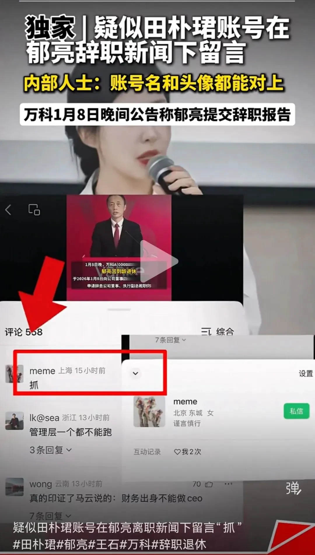 还有财经媒体扒出来,说田小姐在郁亮辞职的新闻底部留言,一个“抓”字。
