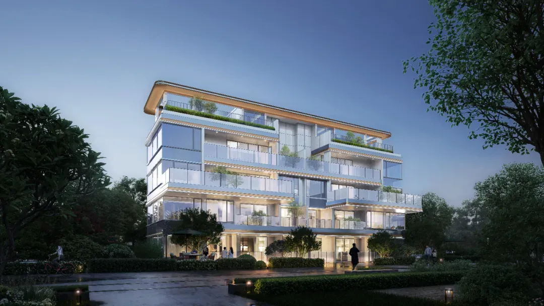 三层约115㎡户型,送南北双露台。这一户型,则通过南北双露台的设计,提供了超过50㎡的露台空间,能一面望江一面望花园。四层约124㎡户型,送顶复。下层做了侧花园设计,顶层的天面露台全赠送,实现了约242%的使用率。