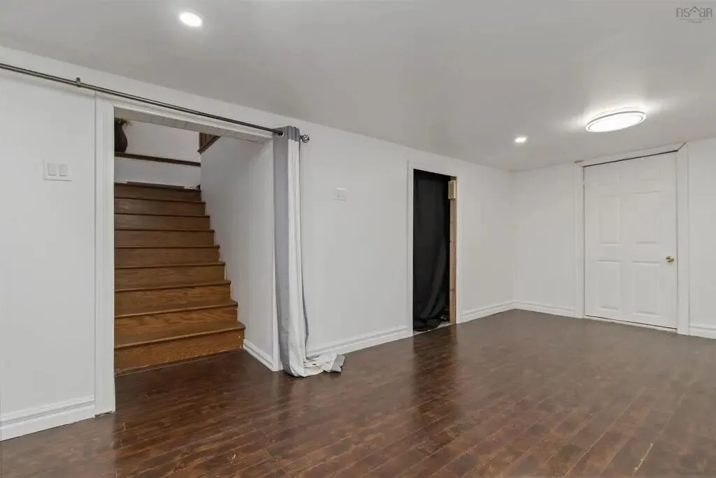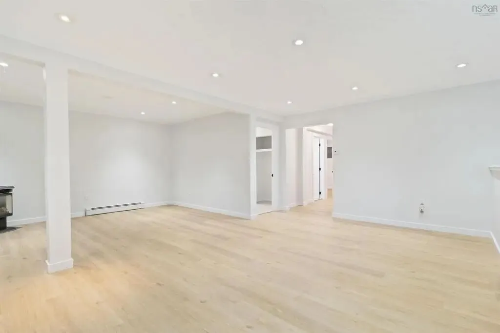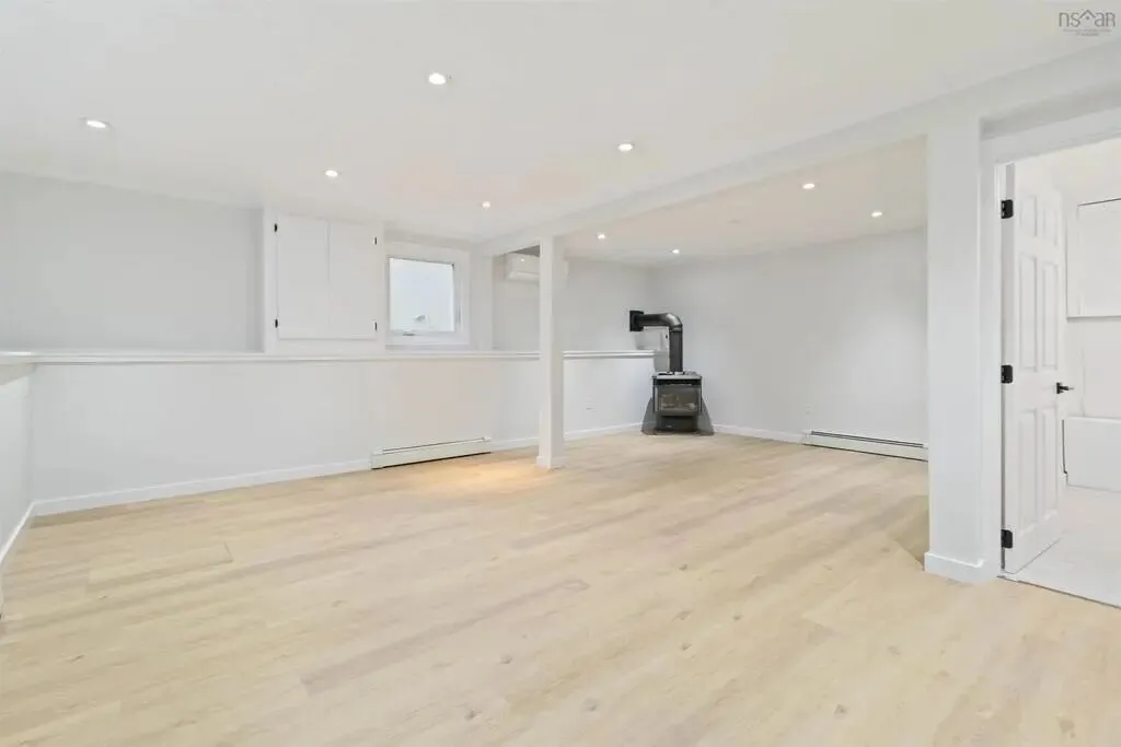 楼下设有宽敞的娱乐室,铺设了全新的乙烯基木地板,配有踢脚线、石膏板墙面、筒灯和一个丙烷壁炉(尚未连接)。下层还有独立的洗衣房、另一间完整的浴室和两间卧室。