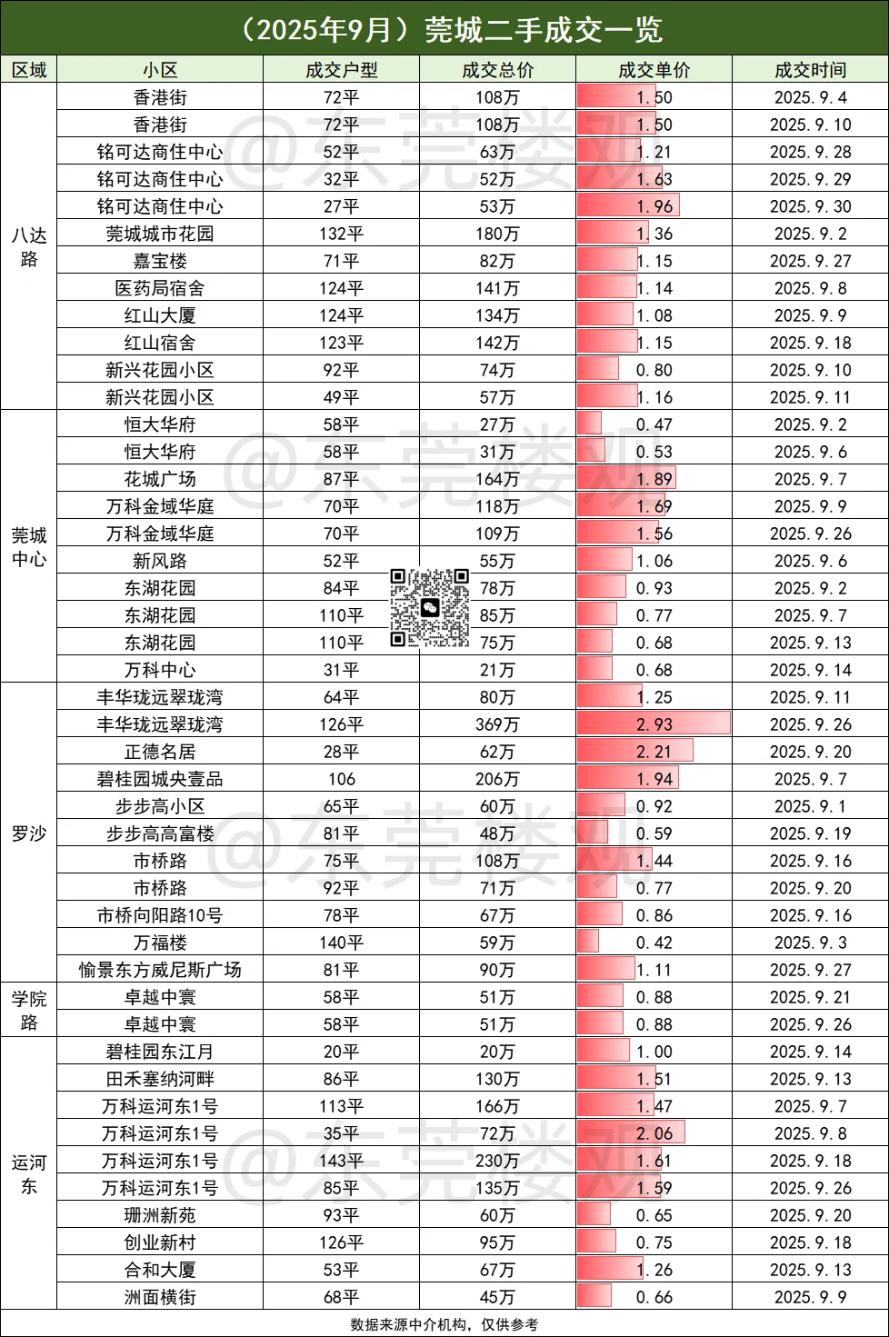 9月莞城二手房成交数据