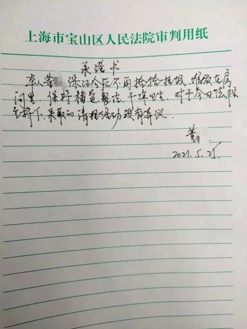 9个小时过去了,清理进入尾声,董女士逐渐解开了心结,甚至还开心地唱起了歌。最后,董阿姨还向法院签字保证“今后不再拾取垃圾堆放在房间里,保持楼道整洁、干净卫生”。