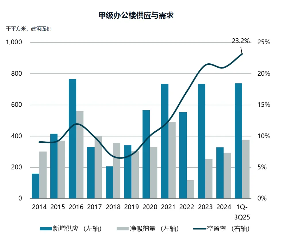 全国商办整体空置率超20%,一线城市写字楼空置率也有15%-18%;