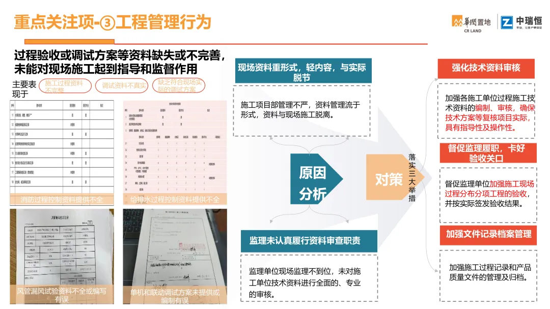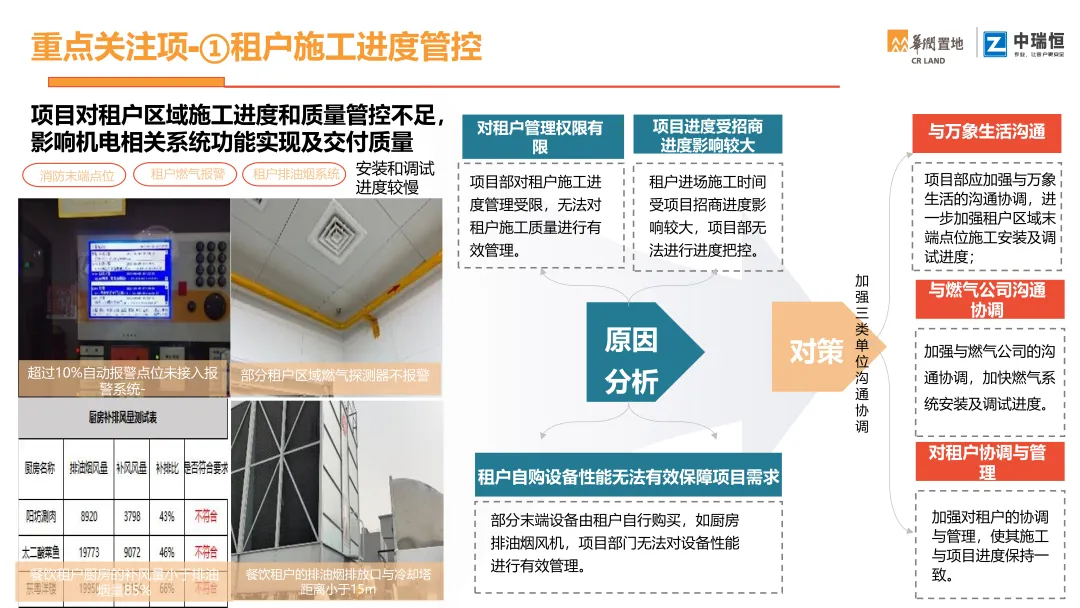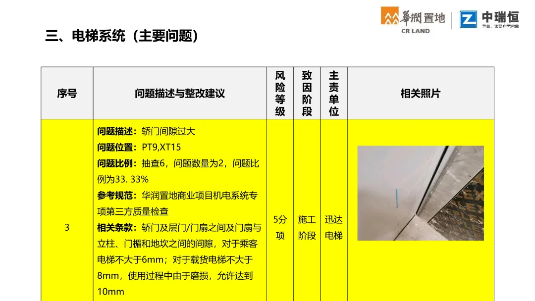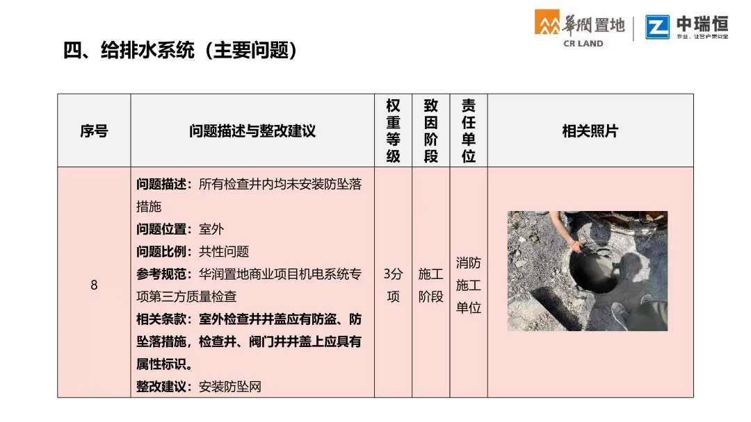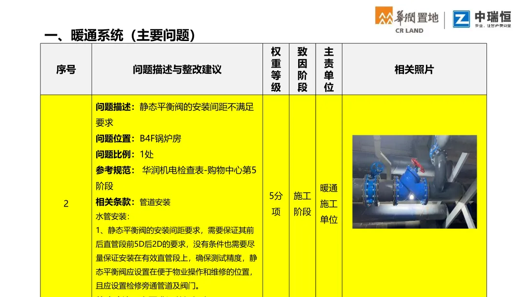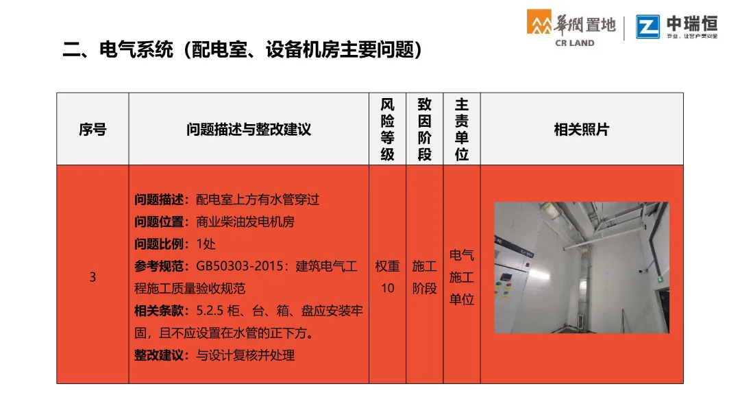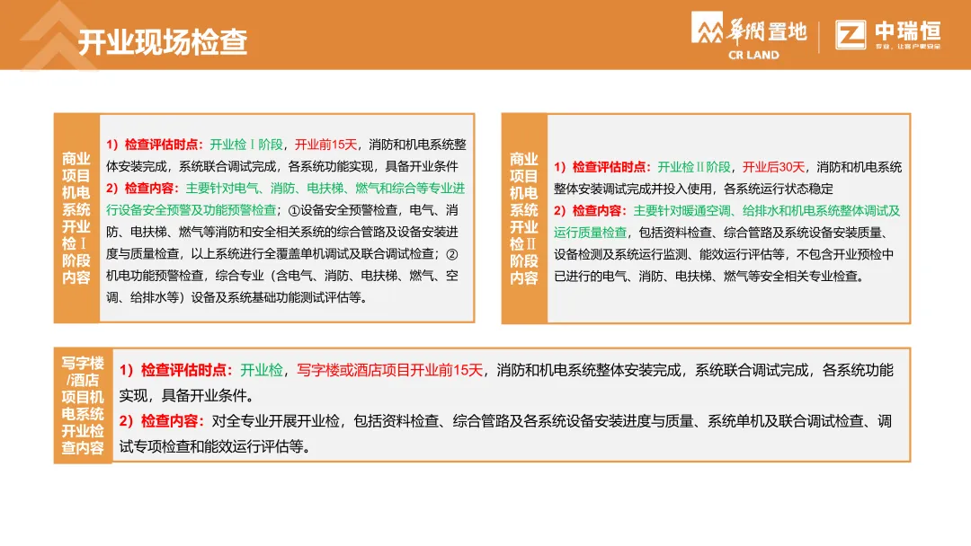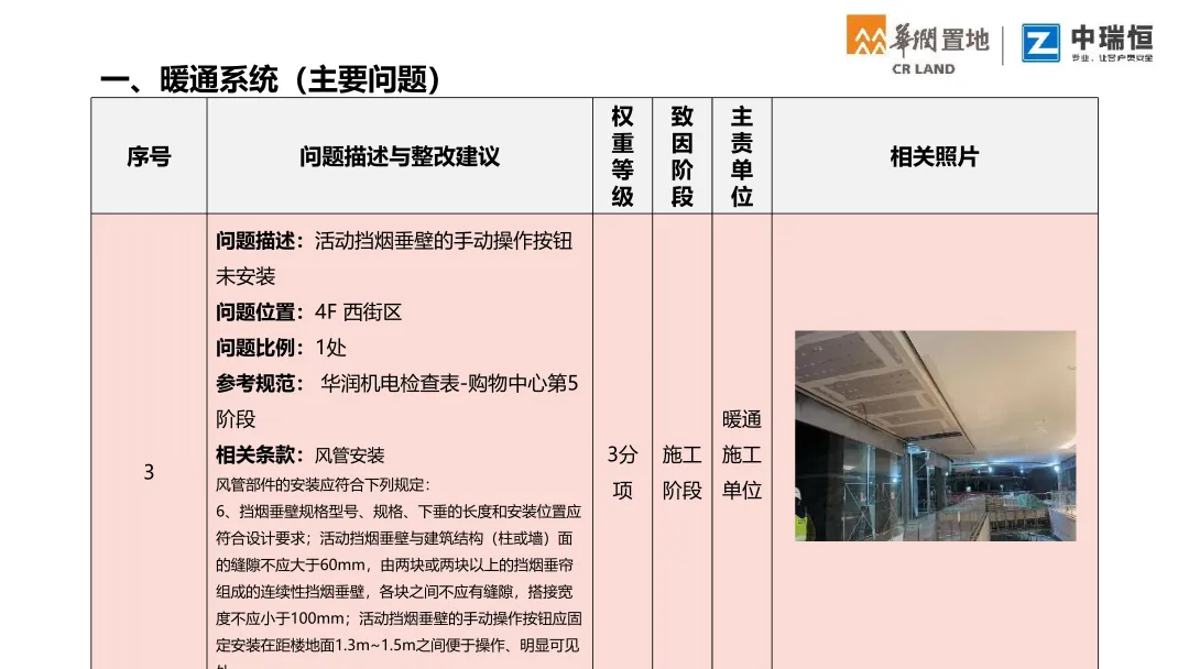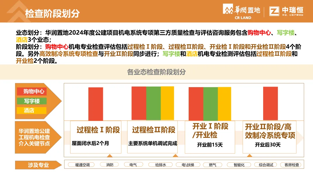 机电质量第三方评估检查覆盖购物中心、写字楼、酒店三大业态。按检查阶段梳理了机电各专业(暖通、电气、消防、给排水、电梯、燃气、调试等)的典型质量问题,并附问题描述、规范依据与整改建议,极具学习意义,通过标准化的第三方评估,倒逼各责任方落实质量主体责任
