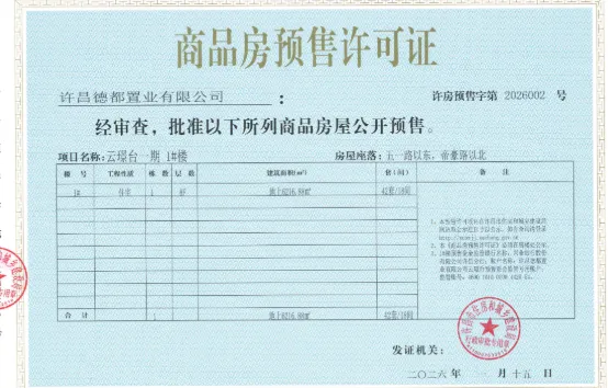 许房预售字第2026001(许昌德都置业有限公司)