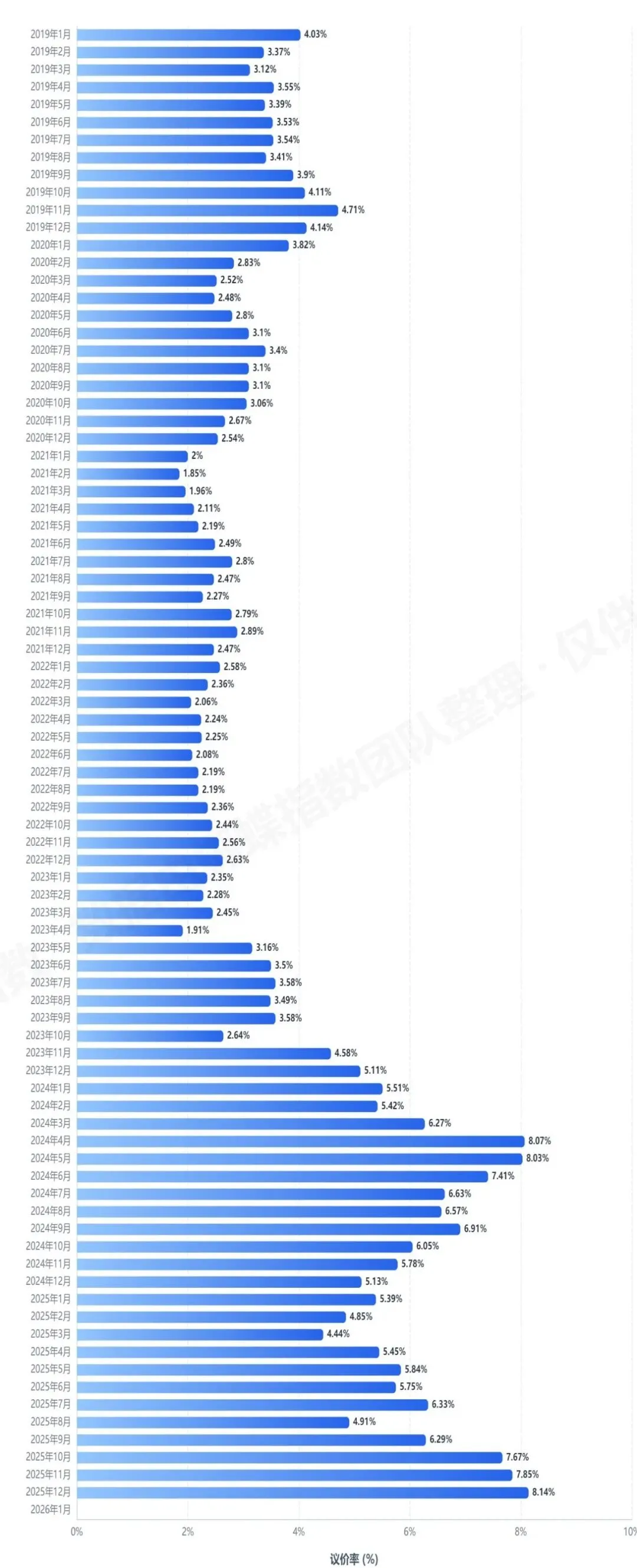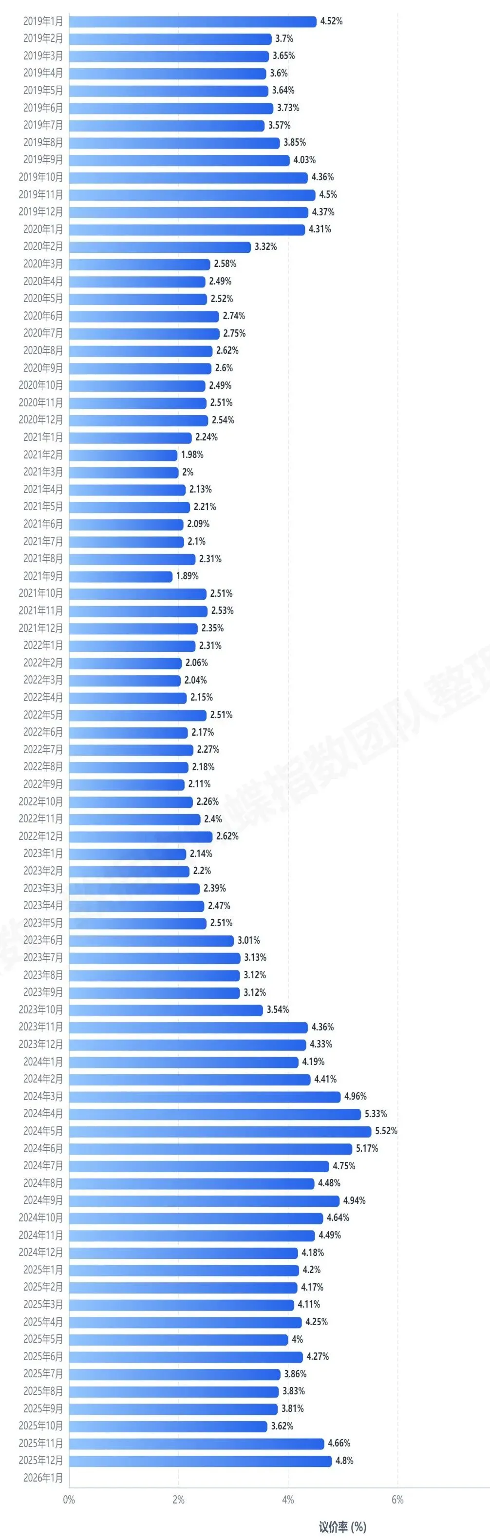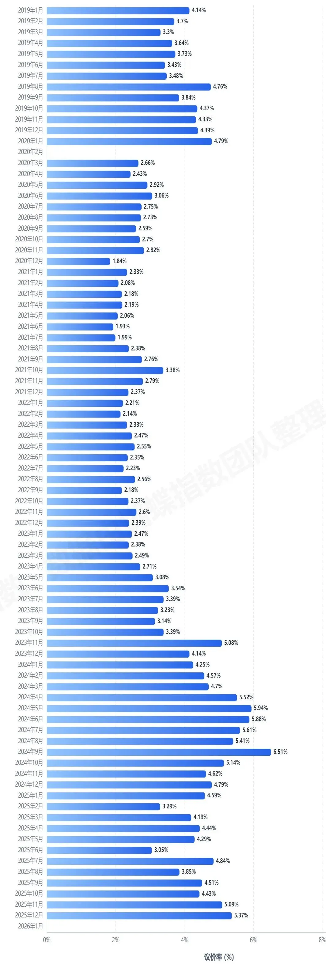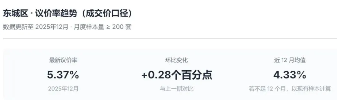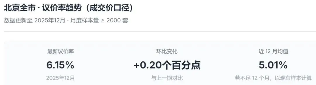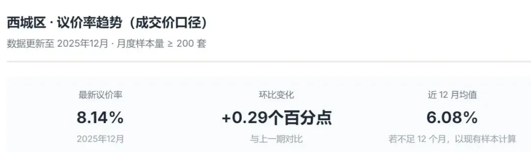 最新数据显示,北京二手房市场砍价空间再突破,超过6%,历史第二高!12月份的议价率为 6.15%, 比11月份又上涨了将近 0.2 个百分点。考虑新粉,开头多啰嗦两句,说一下怎么计算的,以及样本量情况。议价率 = (最后挂盘价 - 最终成交价) / 最后挂盘价 * 100%它代表一套房在最终签约前,买家砍价砍了多少。但很多时候,这个数值和体感并不匹配。原因在于:「最后挂盘价」这个数据,代表的是卖方理想心态。卖家放出来的时候就预想到会被砍价的,也预留了一定的砍价空间。