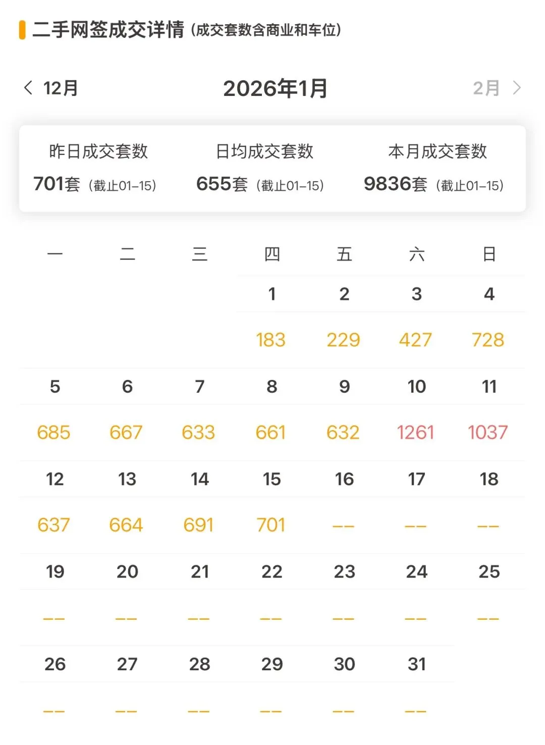 上海二手房最新成交量:昨日(1月15日)网签701套(含住宅、商业、车位等)。