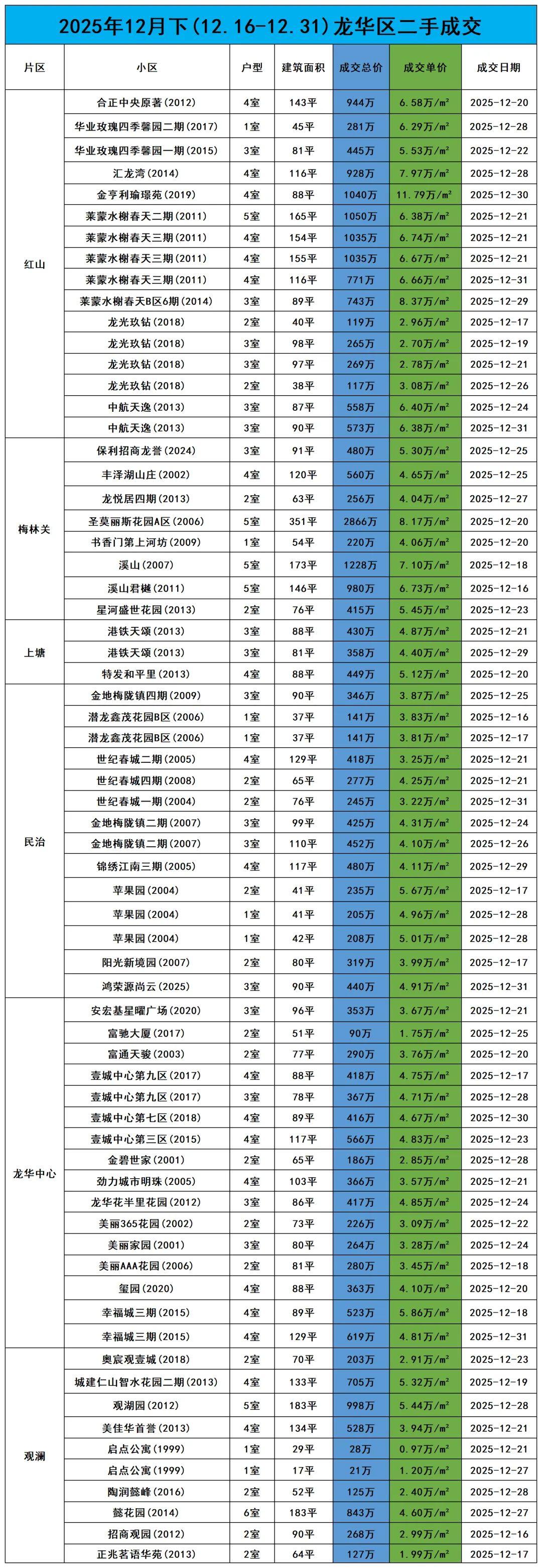 3、还有少部分双拼房源的成交会被拆成两条记录,将两条记录的价格相加即可;如果对某些记录价格有疑问或异常,也欢迎评论区指出,谢谢大家!美团APP搜 “777712” 领外卖券,点餐更便宜,每天都可以领;搜“777713”,可购买美团优惠券包年卡,买团购、点外卖更优惠;搜“777715”,领取美团闪购券,可超低价买百果园水果等。深圳消费券群、羊毛群、吃喝玩乐特价群,