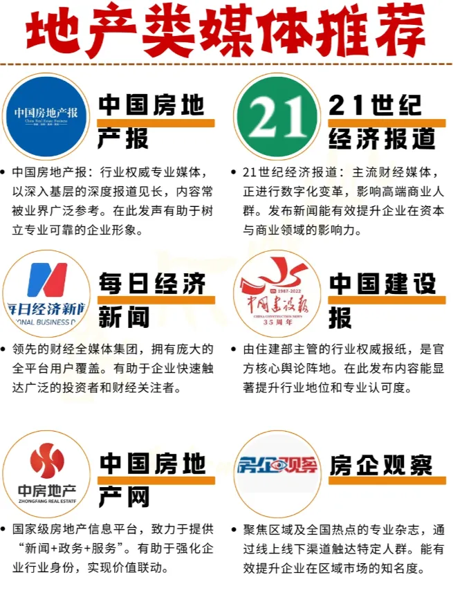在房地产行业,权威媒体的发声不仅是信息传递的渠道,更是企业树立形象、扩大影响、链接资源的关键平台。选择合适的媒体进行报道,能够显著提升品牌的专业性、公信力与市场认知度。