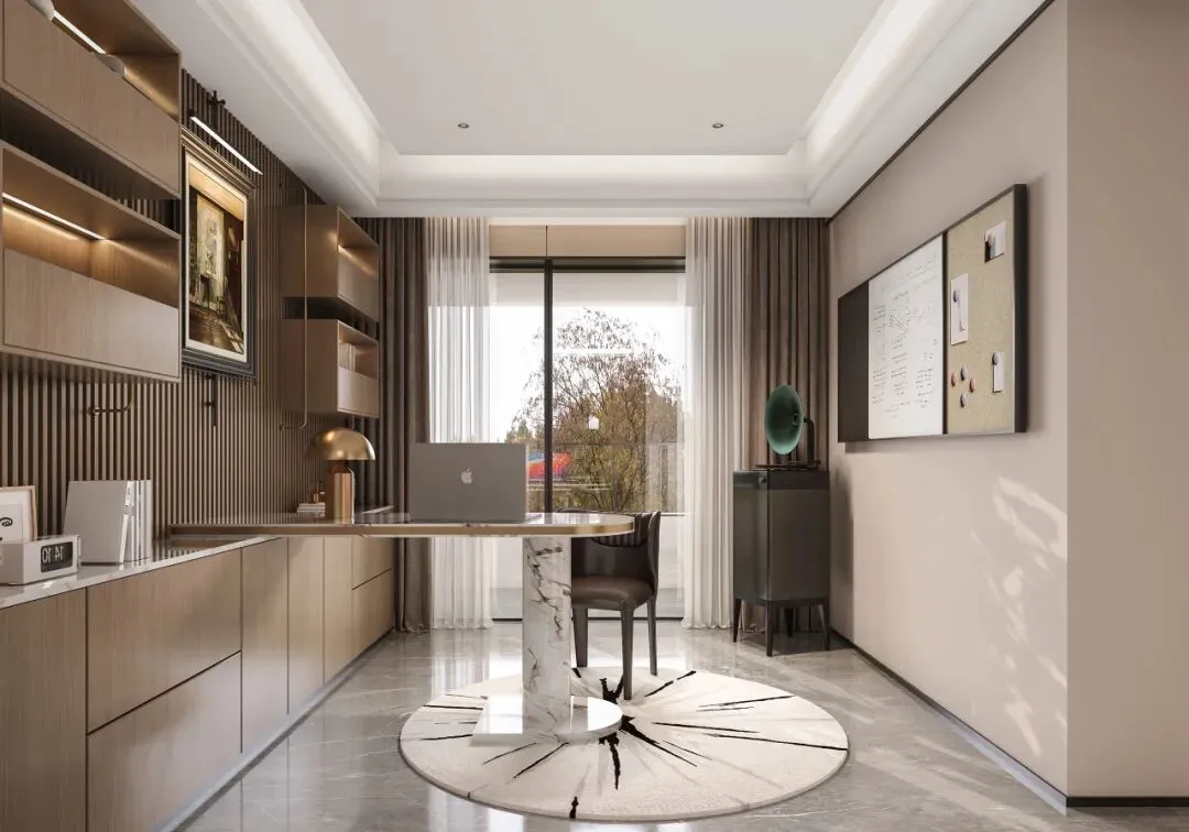 空间材质 | : 艺术漆、实木、皮艺、木饰面、金属