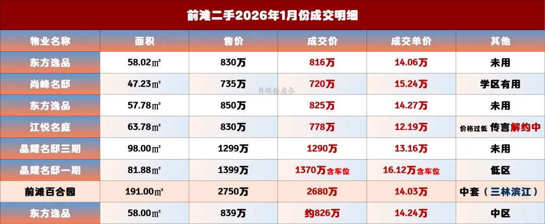 >前滩『二手房周报•26年1月16日』挂牌/已售/数据库•每周五更新
